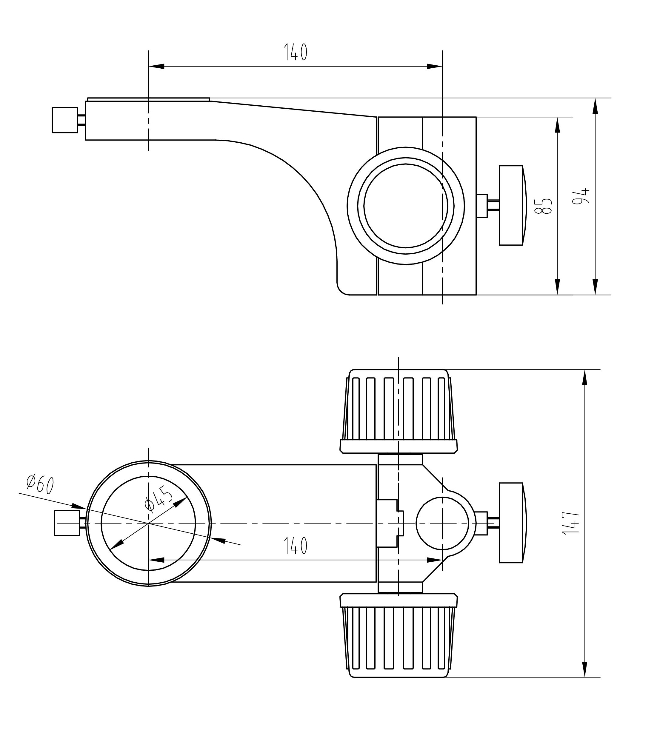 鏡體安裝孔直徑Φ 45mm ,兩孔中心距 140mm
