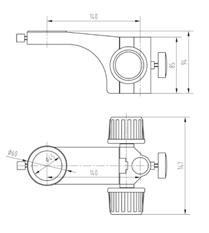 ● 立柱安裝孔直徑Φ25mm,鏡體安裝孔(kǒng)直徑Φ45mm,