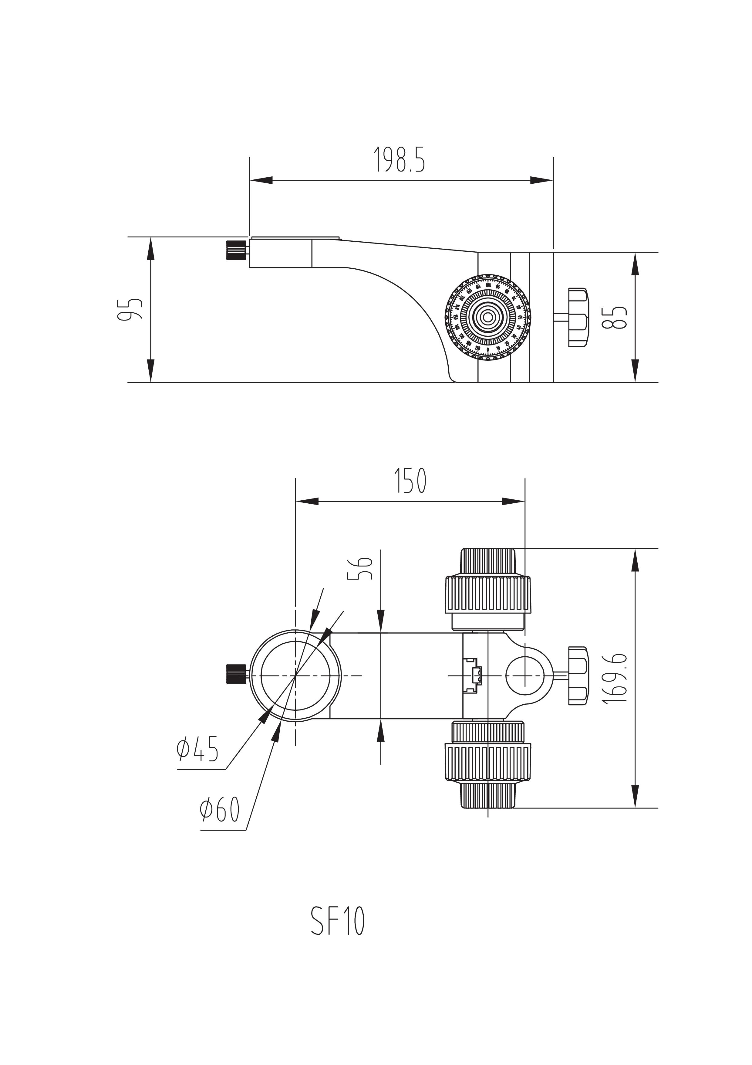 ● 鏡體安(ān)裝孔與立柱(zhù)安裝孔中心距150mm