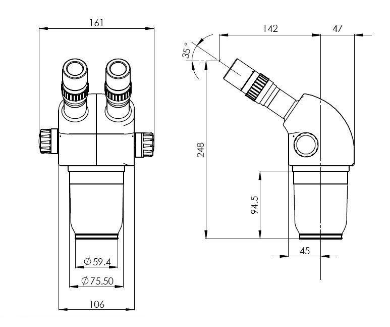 瞳距調節範圍(用10X目鏡)