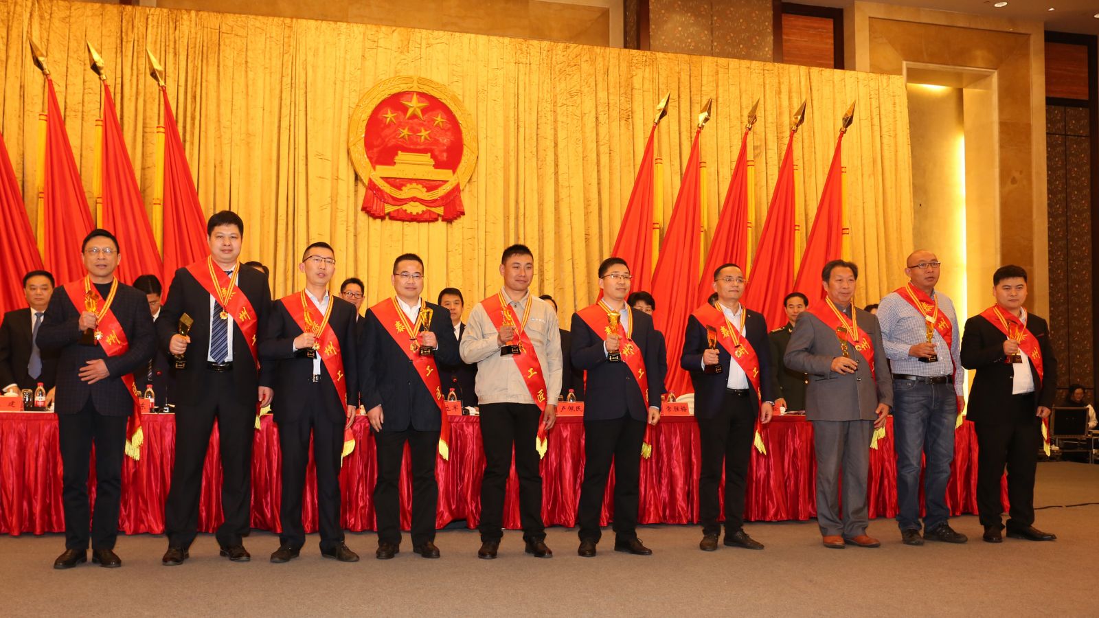 用勞動凝(níng)聚磅礴力量,用勞動創(chuàng)造泰州輝煌。4月28日下午,由中共泰州市委、泰(tài)州市人民政府主辦的“泰(tài)州市勞動模範”表彰大會在泰州(zhōu)金(jīn)陵國際大酒店舉行,表彰了在“泰州勞(láo)模”和“新(xīn)時代百(bǎi)名工匠”評選活動中脫穎而出的2019年泰(tài)州市(shì)勞動模範(fàn)、全國和省(shěng)“五一獎(jiǎng)”獲得者、“工人先(xiān)鋒號(hào)”獲得者和“新時代泰州百名工匠”,用簡樸而又不失隆重的(de)方式向最美勞動者致敬。